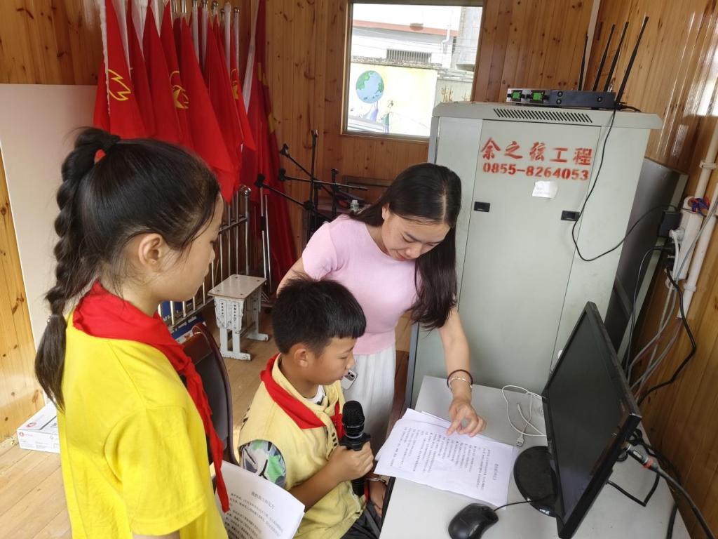 舟溪小学广播站的播音员正在深情朗诵着诗歌《我的南方和北方》。吴兴菊是学校广播站的指导老师,看见我们来,介绍着这两位五年级的孩子:“这是我们广播站的王牌呢!”