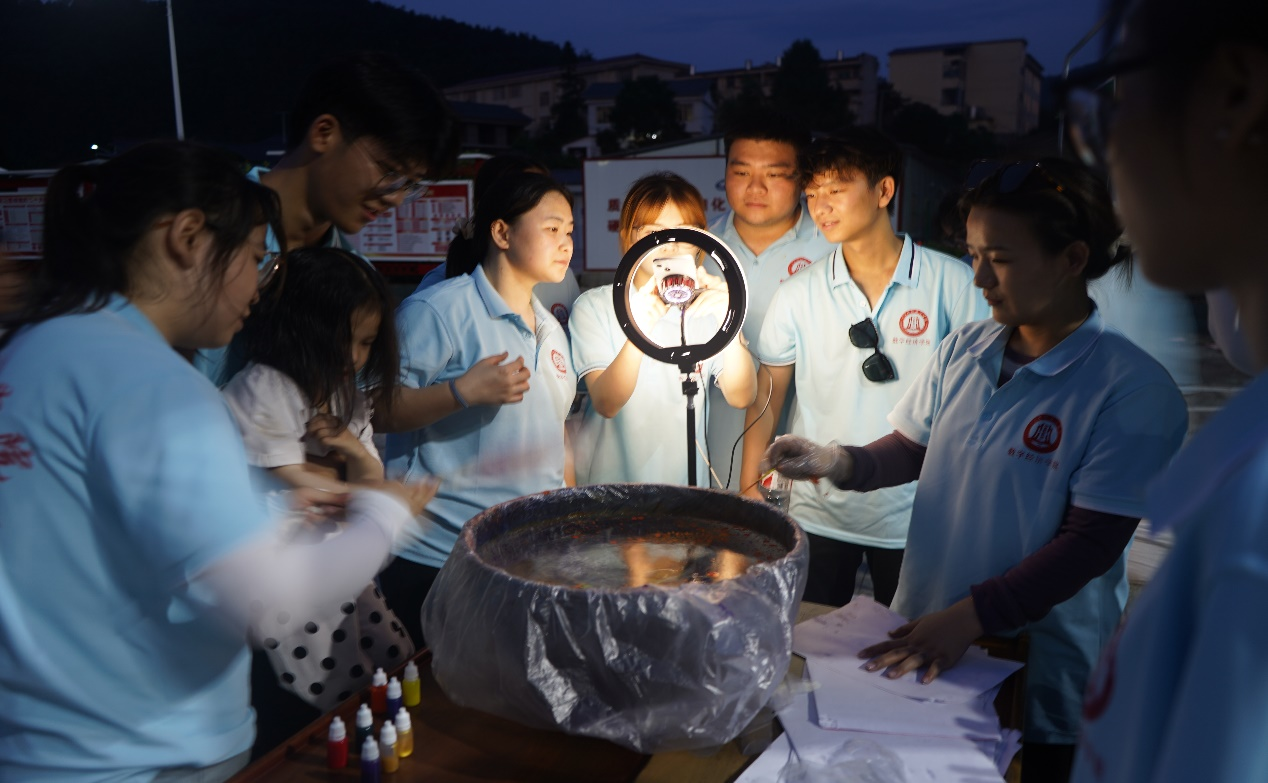 为更好地传播非遗漆扇文化,实践队员在现场一边教当地居民如何制作漆扇,一边直播记录居民制作漆扇的过程,让更多人领略非遗文化的独特魅力。