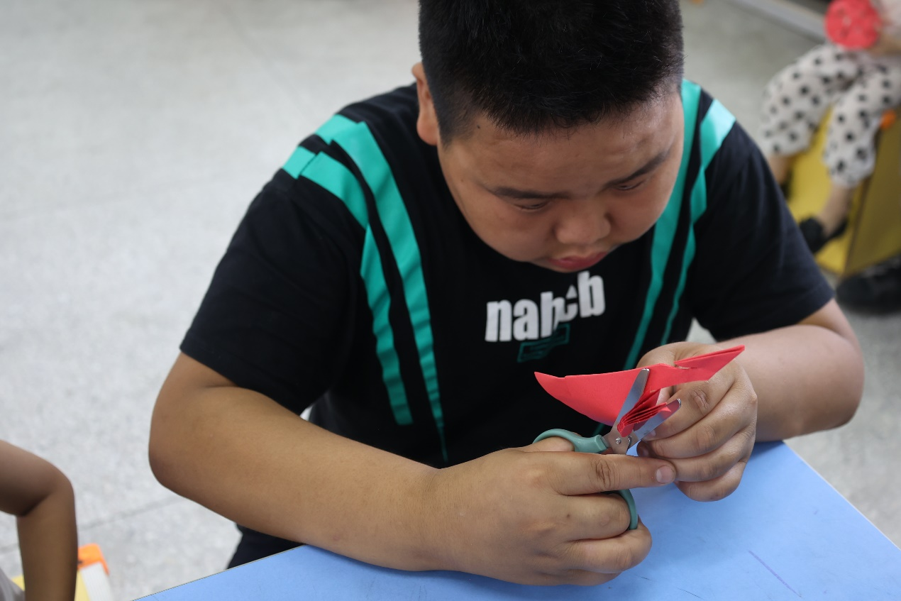 为了让小朋友们更好地理解和掌握剪纸技巧,实践队员们精心准备了丰富的教学材料和工具。从简单的对折剪纸开始,实践队员们耐心地示范每一个步骤,手把手地指导小朋友们如何折叠纸张、如何下剪。小朋友们全神贯注地倾听着,一双双小手紧紧地握着剪刀,小心翼翼地尝试着。