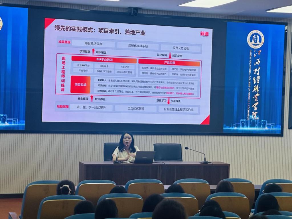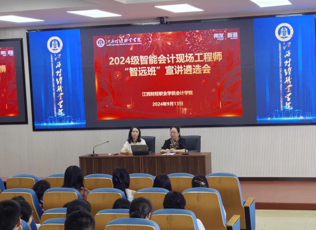 为积极响应教育部办公厅等五部门关于实施职业教育现场工程师专项培养计划的通知要求,进一步推进省教育厅开展的省级职业教育现场工程师产业学院建设项目有效实施,在总结首期智能会计现场工程师“智行班”学员培养经验基础上,9月13日上午,会计学院教师党支部联合南昌用友产业园党支部在浔阳校区综合楼七楼报告厅,面向2024级大数据与会计专业新生,组织开展2024级智能会计现场工程师“智远班”宣讲遴选会。用友集团江西新道科技股份有限公司服务总监彭佳琦莅临现场宣讲。