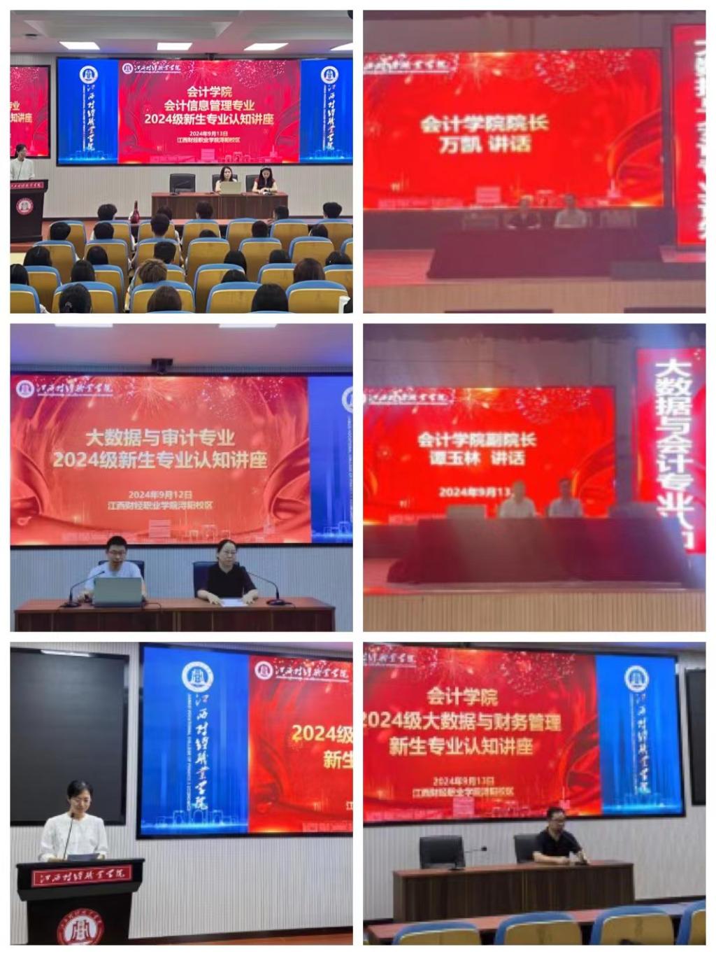 为了让会计学院2024级新生了解所学专业,快速适应大学生活。2024年9月11日—9月13日,会计学院分专业、分批次在浔阳校区英才交流中心、综合楼7楼报告厅开展了2024级大数据与会计、大数据与审计、大数据与财务管理和会计信息管理专业认知讲座?;峒蒲г涸撼ね蚩痹撼ぬ酚窳?、齐洁,专业教研室主任以及企业导师、学院教师和2024级全体新生认真聆听了讲座。