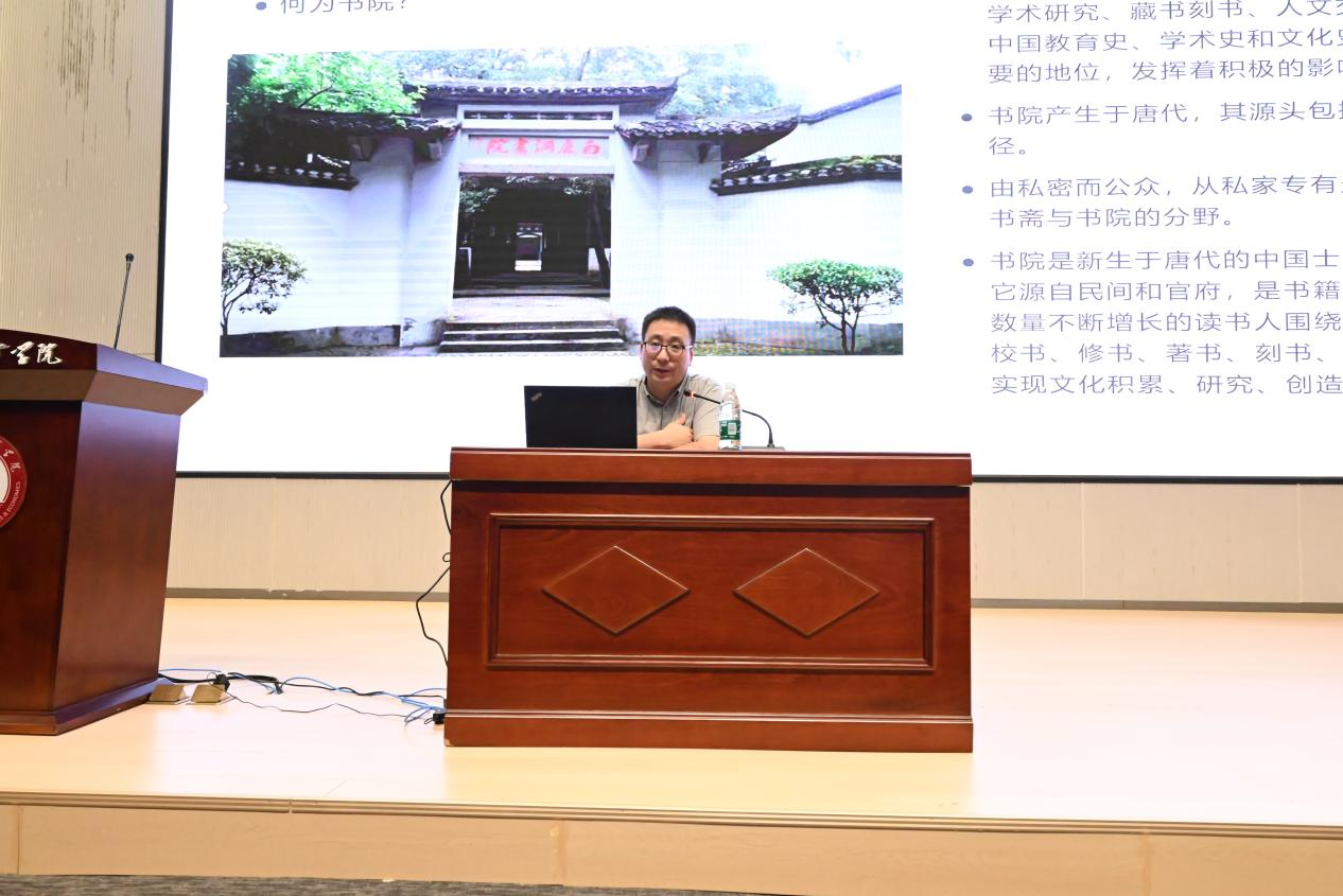 讲座伊始,熊韬对滑红彬教授的到来表示衷心感谢,并强调此次讲座对于文化旅游学院专业建设和人才培养具有重要意义?;淌谏钊肭吵龅亟樯芰税茁苟词樵旱睦酚胛幕焱歉惺馨茁苟词樵涸毯纳詈窭肺幕自?。白鹿洞书院作为中国历史上最著名的书院之一,自宋代以来便承载着培育英才的使命?;淌诖雍挝樵?、书院的源头讲到江西书院的辉煌历史,详细解释了书院的产生与发展;从中唐创建到当代复兴,在滑教授的讲解下,大一新生详细了解到了白鹿洞书院见证的中国古代教育的发展历程。讲座现场娓娓道来,全场文旅新生认真聆听,并开展了良好互动。