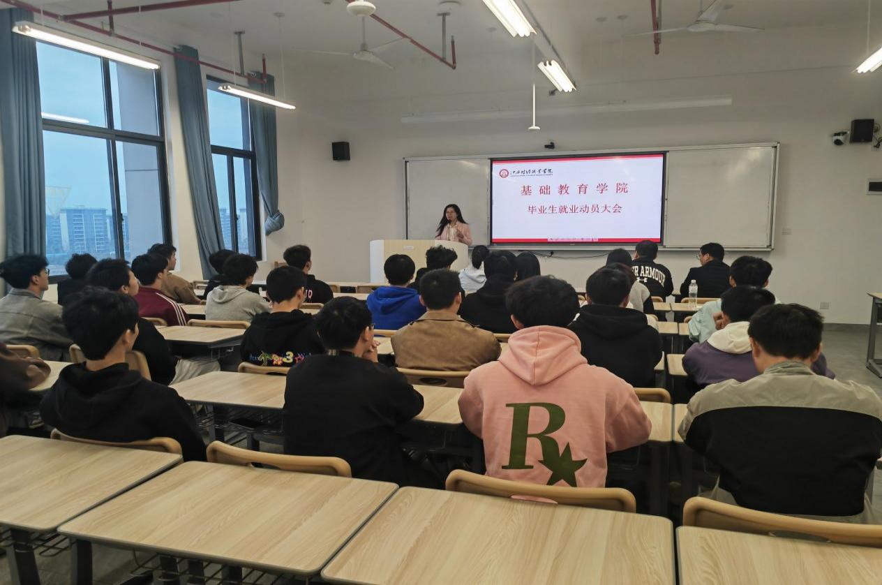 为贯彻落实就业优先战略,促进毕业生高质量就业,按照学校的统一部署,10月29日下午,基础教育学院在一教606教室举办2025届毕业生就业动员大会?;〗逃г涸诩业痴嘧映稍?、企业代表、毕业班辅导员以及全体2025届毕业生参会。