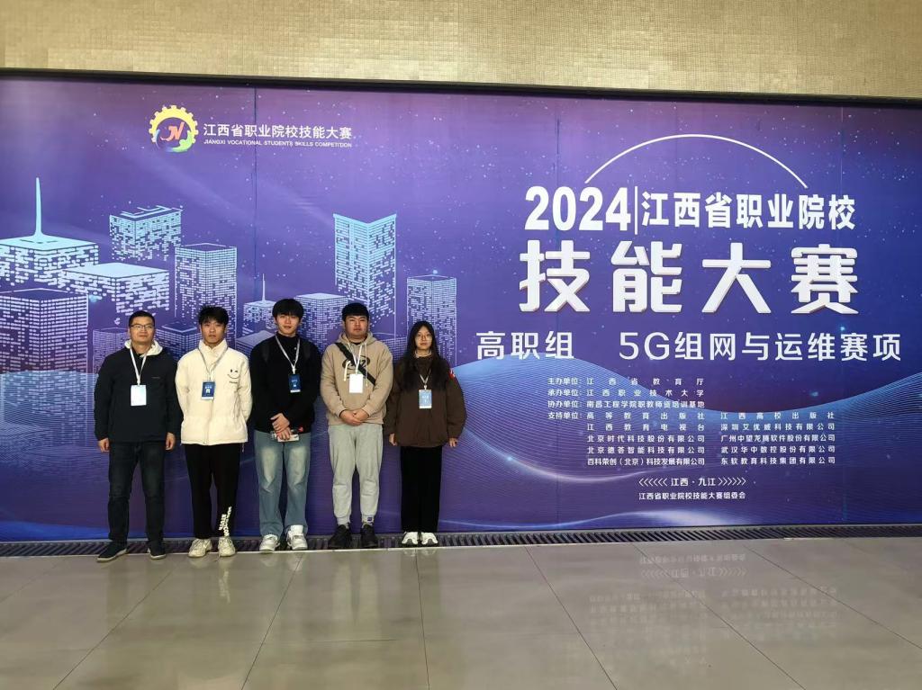 2024年12月1日,江西省职业院校技能大赛“5G组网与运维”赛项在江西职业技术大学成功举办。信息工程学院涂青云、胡晓娥老师指导的学生竞赛团队荣获本次赛项二等奖。