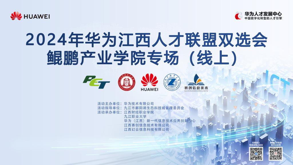 为深化产教融合,拓宽学生就业渠道,助力高质量人才精准对接企业需求,2024年12月24日,华为ICT人才联盟双选会(江西站)——江西财经职业学院信息工程学院线上专场鲲鹏产业学院成功举办。