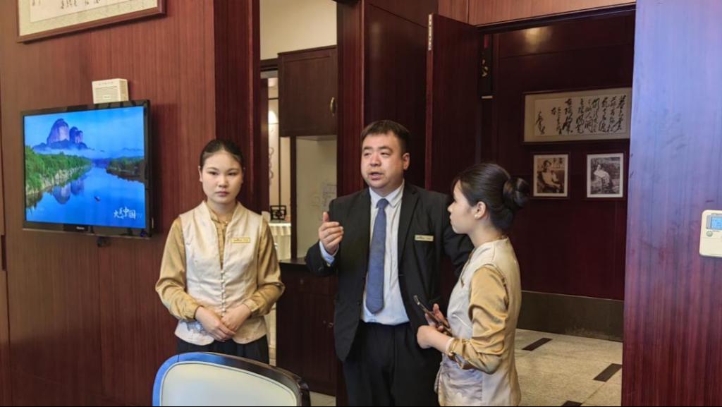 为精准匹配高规格会务需求,文化旅游学院深度联动校企合作单位庐山嘉豪淮海国际豪生酒店,组建“学生-员工”联合服务梯队,全面覆盖前厅礼宾、宴会统筹、客房保障等全场景服务???。在实践服务阶段,学院与企业导师团队提前开展专项研讨,以“酒店营销经费回扣”这一行业典型案例为切入点,深化学生对职业规范与作风建设的内涵认知,实现专业技能与职业素养双提升。