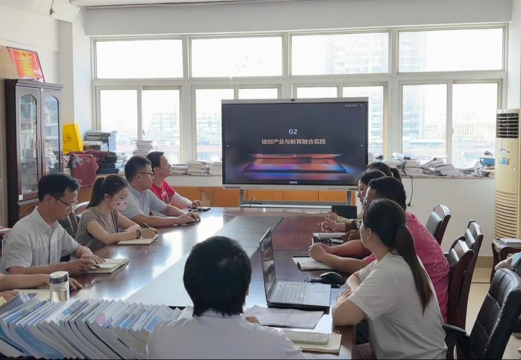 为深化产教融合,探索数智化教学创新路径,5月21日下午,信息工程学院在浔阳校区综合楼813会议室成功举办“数智赋能,融合创新”专题教研活动?;疃劢剐糯床涤虢逃诤鲜导?、人工智能技术赋能教学改革两大主题,旨在推动教育教学与前沿技术的深度融合。学院全体教师积极参与,共同探讨数智时代背景下职业教育的发展方向,为培养高素质技术技能人才建言献策。