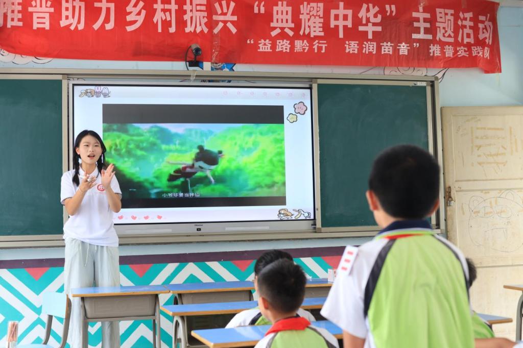 在黔东南苗族侗族自治州如诗如画的青山绿水间,一场以“多元推普助力振兴,共绘民族同心圆”为主题的实践活动正如火如荼地展开。7月8日至16日,“益路黔行,语润苗音”实践队在阔别一年之后,再度踏足凯里市舟溪镇,创新采用“语言培训+文化传承+产业发展”的多元模式,为当地的学子与村民搭建起语言学习与文化传承的桥梁,让普通话成为连接传统与现代的文明纽带,在苗乡侗寨熠熠生辉。