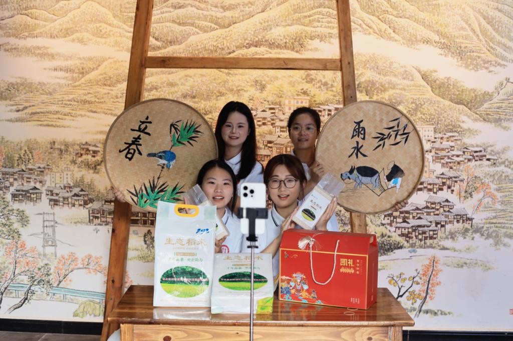 “家人们看过来,这是我们苗寨的生态稻米……”在曼洞村的稻田边,实践队员通过抖音直播推广苗寨生态稻米等农特产品,以标准普通话讲解配合实景展示,有效带动线上订单增长。在文旅推广方面,团队精心制作展示苗绣针法、蜡染纹样的短视频,并设计包含作品特色与匠人联系方式的“销售名片”,实现文化产品的多渠道传播。为提升匠人电商运营能力,团队还设计了融合非遗文化特色的直播话术,从语言表达、互动技巧等维度进行培训,助力匠人在直播中生动展示苗绣、蜡染的魅力,建立深度客户链接。