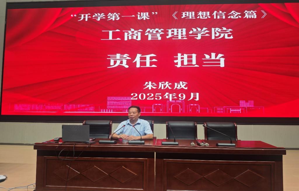 开学典礼在热烈的氛围中圆满落幕。典礼结束后,马克思主义学院院长朱欣成教授为我院2025级新生做题为“责任担当”的开学第一课之理想信念教育讲座。朱教授从加强自我管理、学好专业知识、提升综合素质三方面积极引导学生深刻把握理想信念的实践意义,循序渐进解读责任担当的现实要求,启发学生如何在新时代坚定信念、担当使命。这场理想信念教育不仅是新生迈入大学的思想启航课,更是一堂青春成长课。它帮助新生在思想洗礼中坚定方向,在实践磨砺中积蓄力量。
