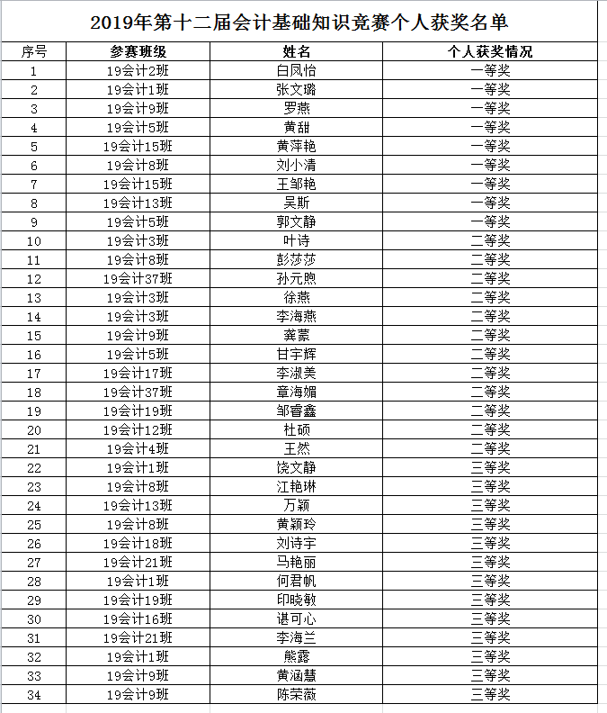 此次竞赛活动的成功举办极大地丰富了我院会计专业学生的第二课堂,调动了学生专业学习的积极性,同时也为学生提供了一个检验自我与施展才华的舞台,培养与提高了学生的专业运用与操作能力。(附:获奖名单)