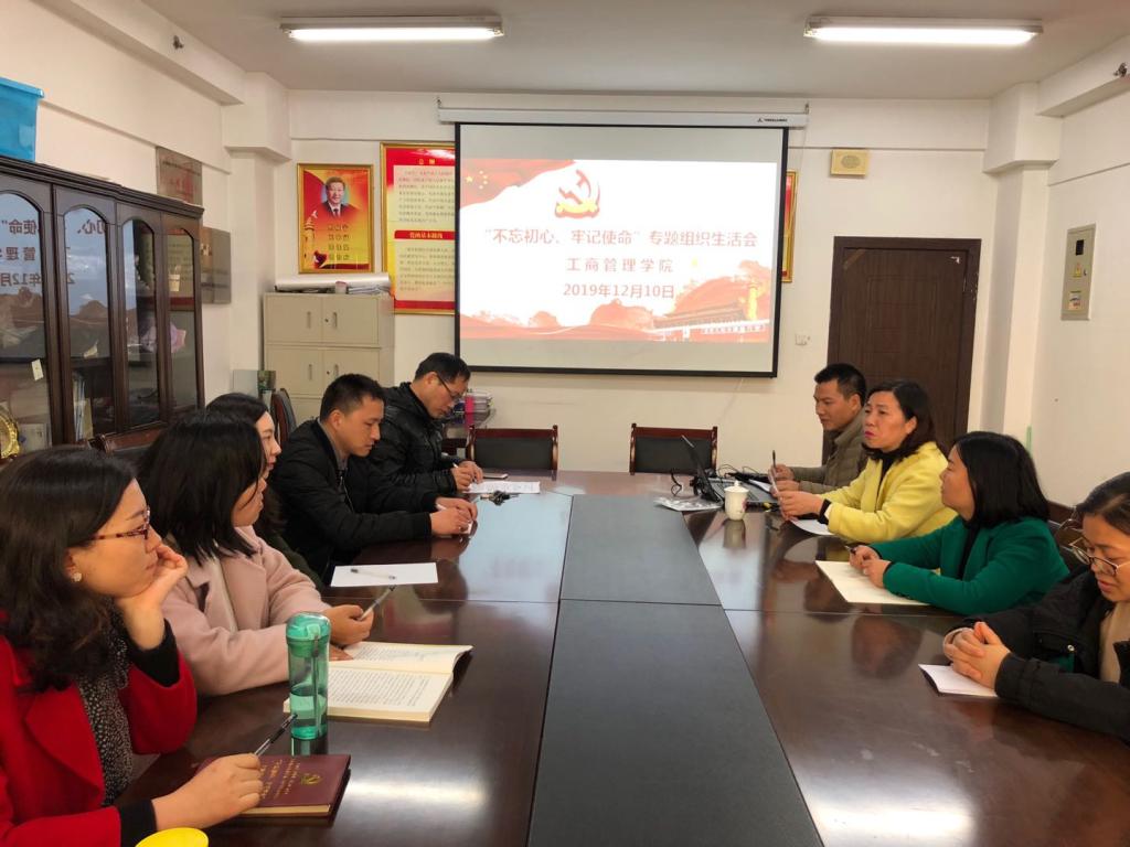 根据学?!豆赜谘г夯愕匙橹倏ㄌ庾橹罨岷涂姑裰髌酪榈吃庇泄厥乱说耐ㄖ芬螅岷媳静棵攀导?,工商管理学院党总支于12月10日在综903室组织召开“不忘初心、牢记使命”专题组织生活会,会议由胡红霞同志主持。