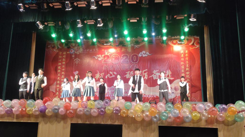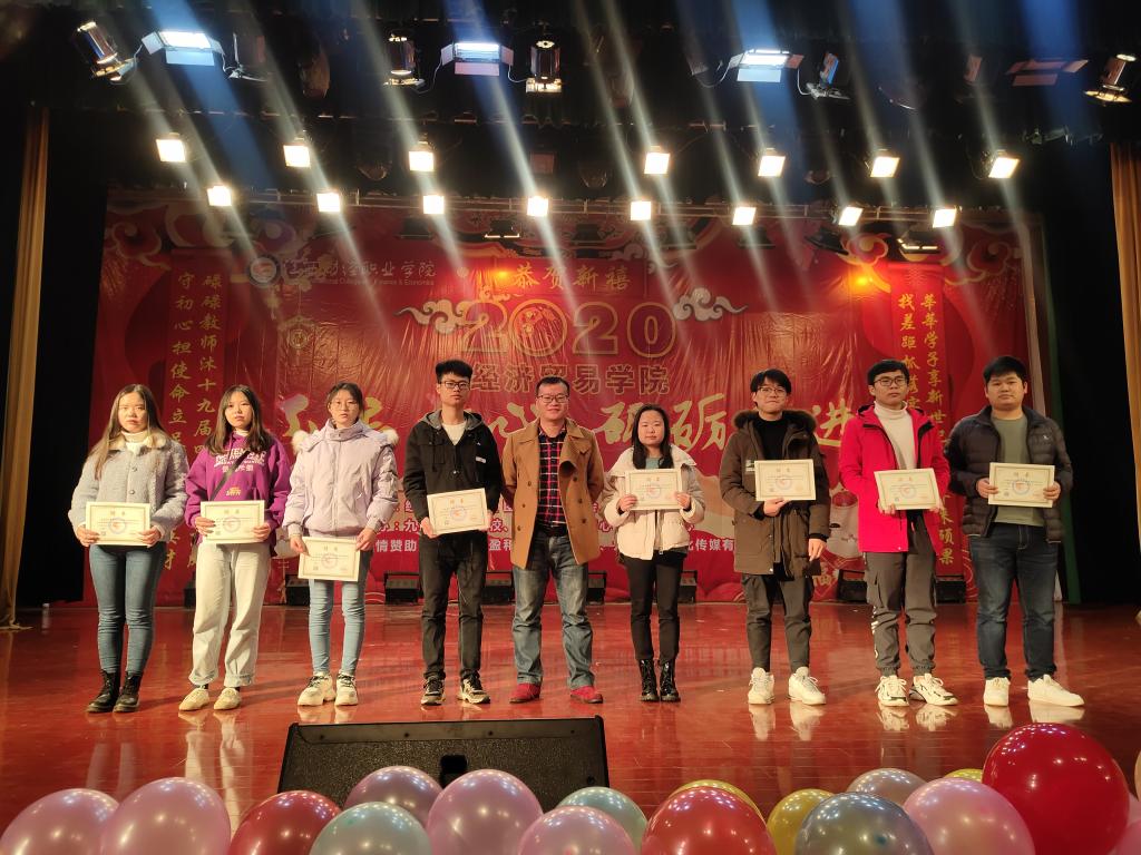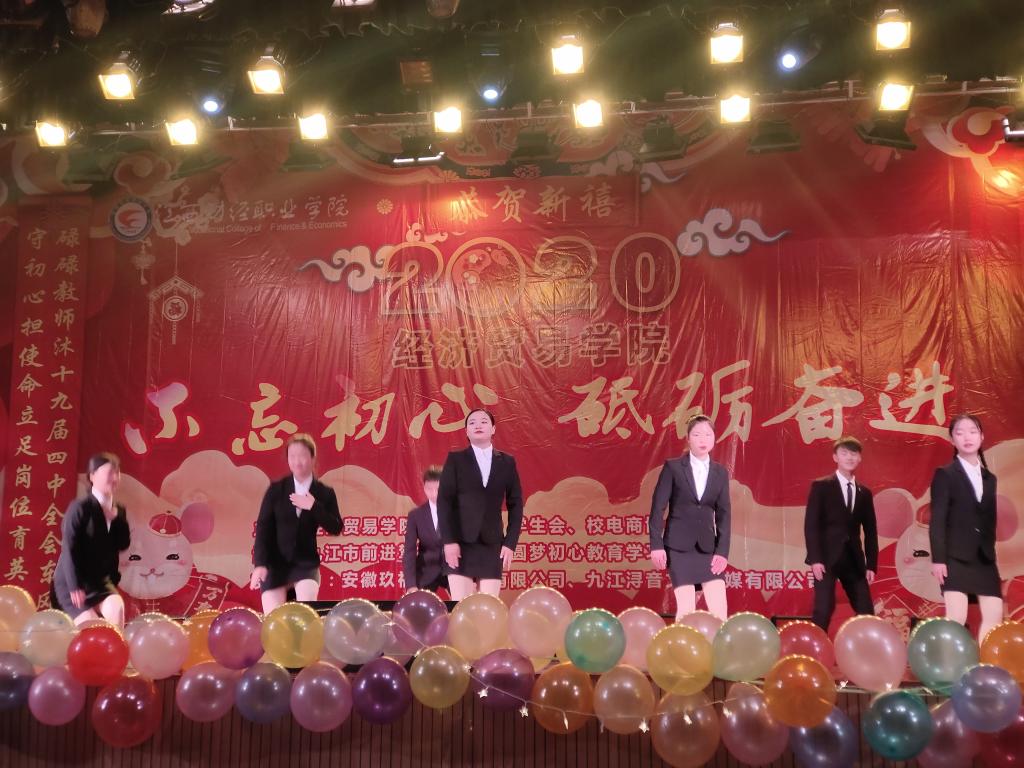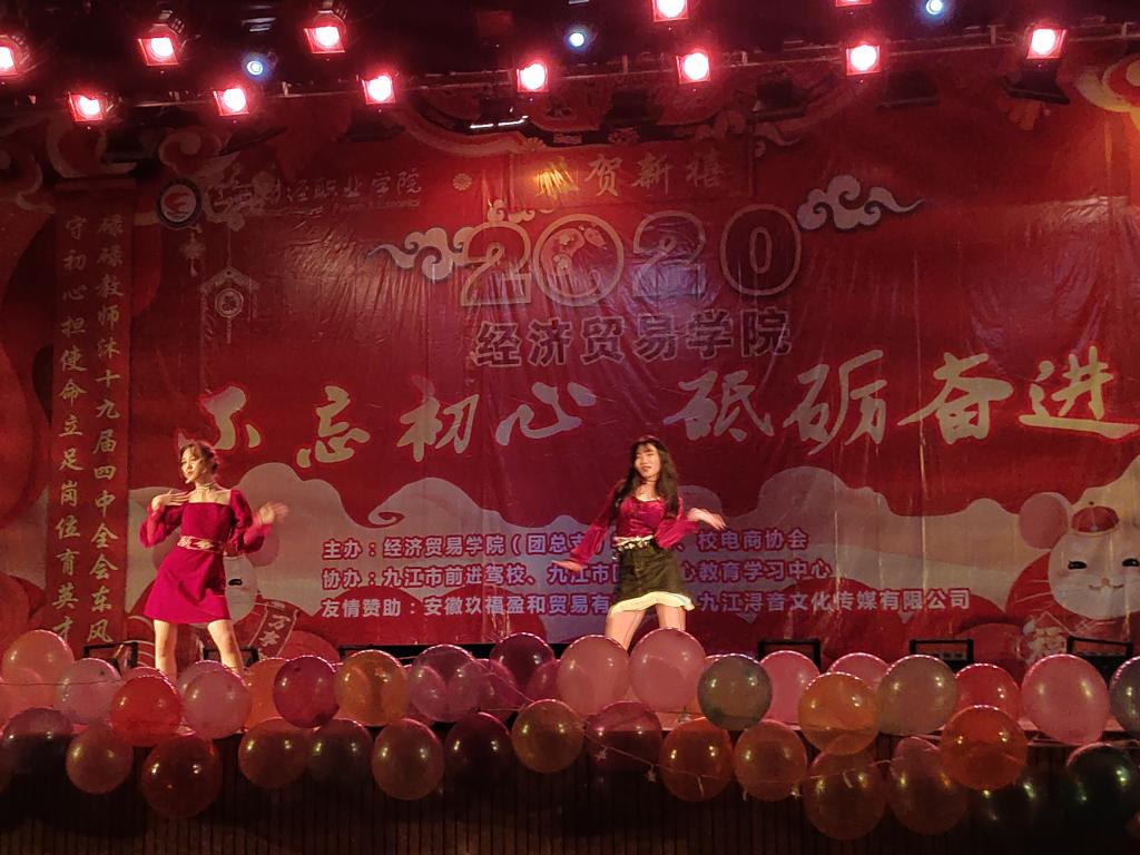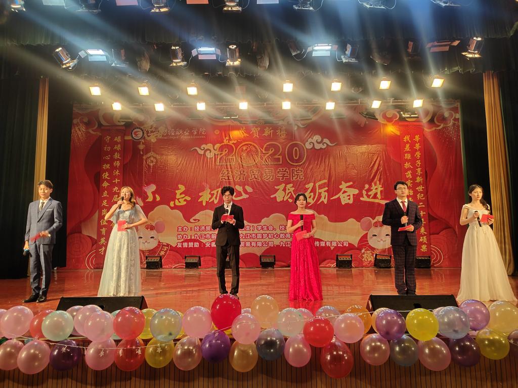 丙年有庆猪辞岁, 子夜无声鼠报春。值此辞旧迎新之际,经济贸易(旅游管理)学院2020“不忘初心、砥砺奋进”元旦文艺晚会暨优秀学生颁奖典礼于12月25日晚19点在校英才交流中心隆重举行。经济贸易学院党政领导、江西享享网络科技有限公司联合创始人孙夏、 九江市浔音文化传媒有限公司总经理助理王紫娟、2018届学生会主席王缘缘学姐、以及我院师生一千余人到场观看。晚会幸运奖品由圆梦初心教育学习中心、九江市前进驾校友情提供。十佳大学生奖品由安徽玖福盈和贸易有限公司、九江市浔音文化传媒有限公司赞助支持。