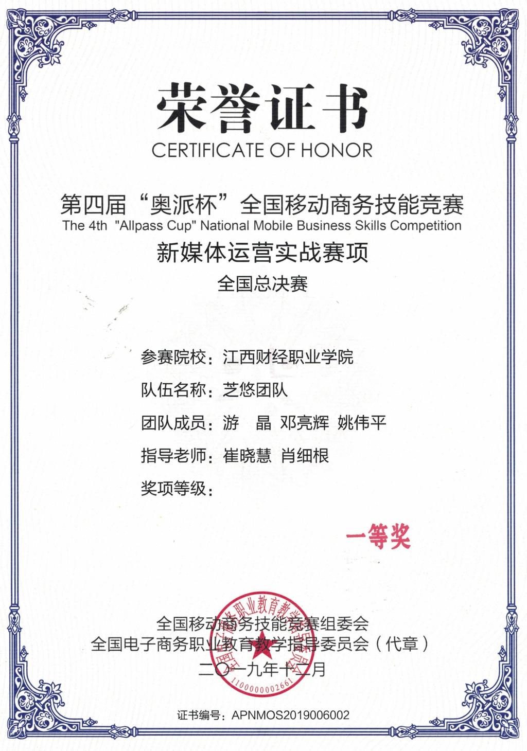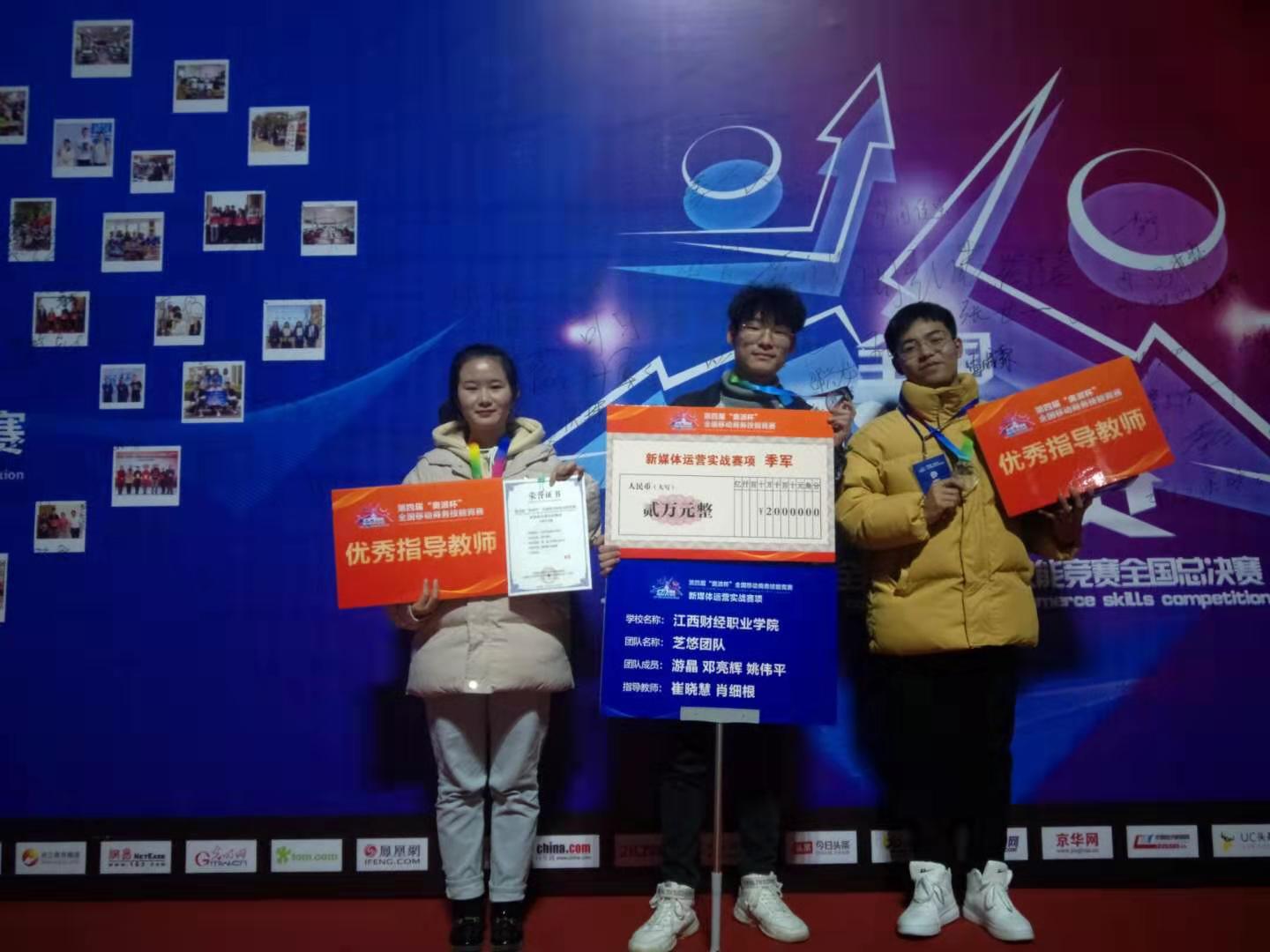 我院芝悠团队以赛区第一的成绩晋级国赛,并获得新媒体运营实战季军,全国一等奖。此次为我校电商专业第六个全国一等奖,实现了行业赛事移动商务、跨境电商、农村创业赛、新媒体运营赛大满贯,充分展示了我院电子商务专业综合实力。
