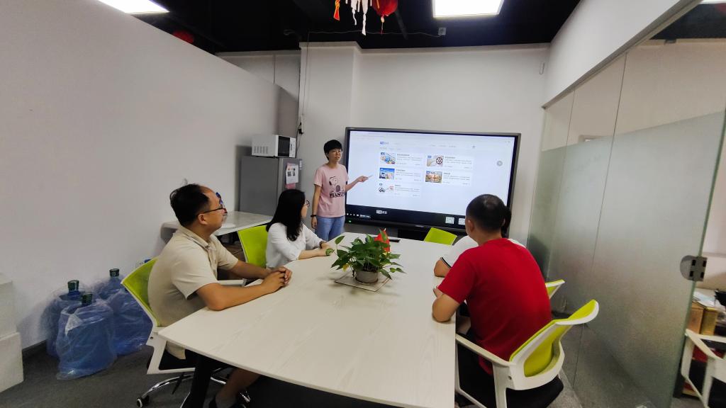 考察团在跨境教育龙头企业广州大洋教育股份有限公司会议室与番禺职业技术学院跨境电商负责人邓志超主任的座谈交流中,深入学习番禺职院跨境电商专业在校企合作模式、产业学院、1+X证书等方面的先进经验。同时大洋教育股份有限公司董事长周春翔介绍了公司在跨境电商教育方面一站式解决方案以及相关产品展示。