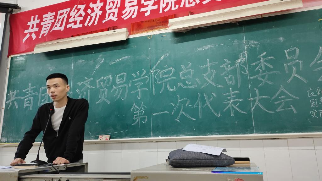 首先,杜波老师对经贸学院团总支工作进行了总结;随即正式开始换届选举,候选人从自我评价、工作经验、工作规划等方面进行了演讲。在场的老师和同学们进行了现场投票,本次选举采取差额选举的方式,经过了现场唱票后,陈锦鸿老师当选经济贸易学院新一届团总支书记、罗珍、伍怡凡同学当选团总支副书记,周毓民、彭加文,唐金玉,曹海霞当选委员。