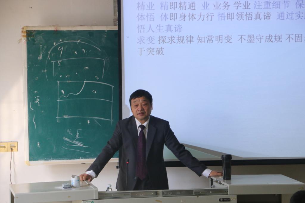 接着,李洪春教授通过介绍并解读我校以及江西财经大学的校训,告知学生们要从“明德、体悟、精业、求爱”以及“信、敏、廉、毅”中学会学习,学会做人,学会做事。