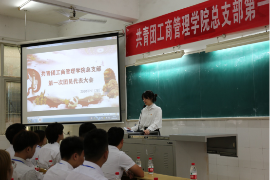 2020年9月28日,工商管理学院团总支第一次团员代表大会在教学楼208隆重召开,全院56名团员代表参加了会议。