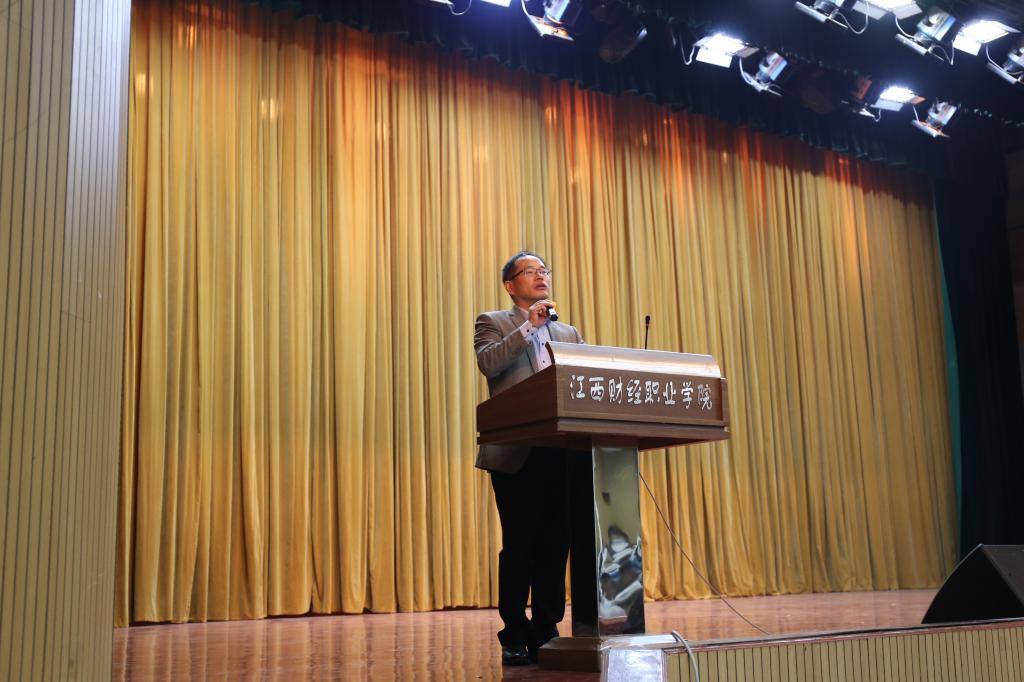 大会首先由工商管理学院院长冯弋江教授带来热情洋溢的致辞。他代表工商管理学院全体师生向来自全国各地的 2020 级新同学表示诚挚的问候和热烈的欢迎,他介绍了学院的发展历史和办学理念,讲述了新生未来三年的大学之旅该如何践行,并对新一届的学生提出期望和要求,期望学生们要树立高远志向,要有高昂的志气,也期望在新学期每一位同学都能培养出高雅的志趣,最后鼓励同学在新的起点有新的开始,承载新的梦想,齐心协力谱写新的篇章!
