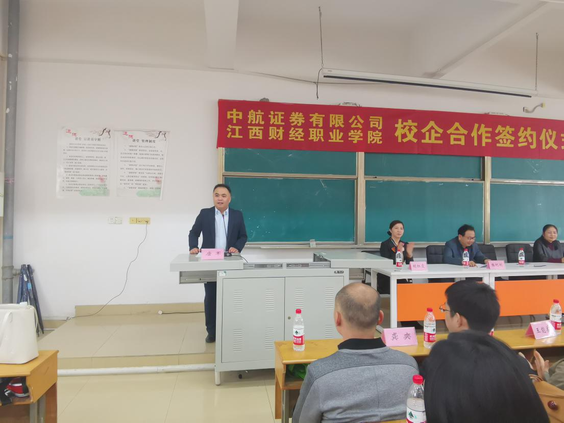 签约仪式上,樊纪明院长介绍了我院的发展历程、专业建设和校企合作项目等基本情况。他指出,此次签约仪式标志着我院与中航证券有限公司在合作办学方面迈出了坚实的一步,有利于进一步提高学生的动手实践能力,增强学生参与社会竞争的能力。