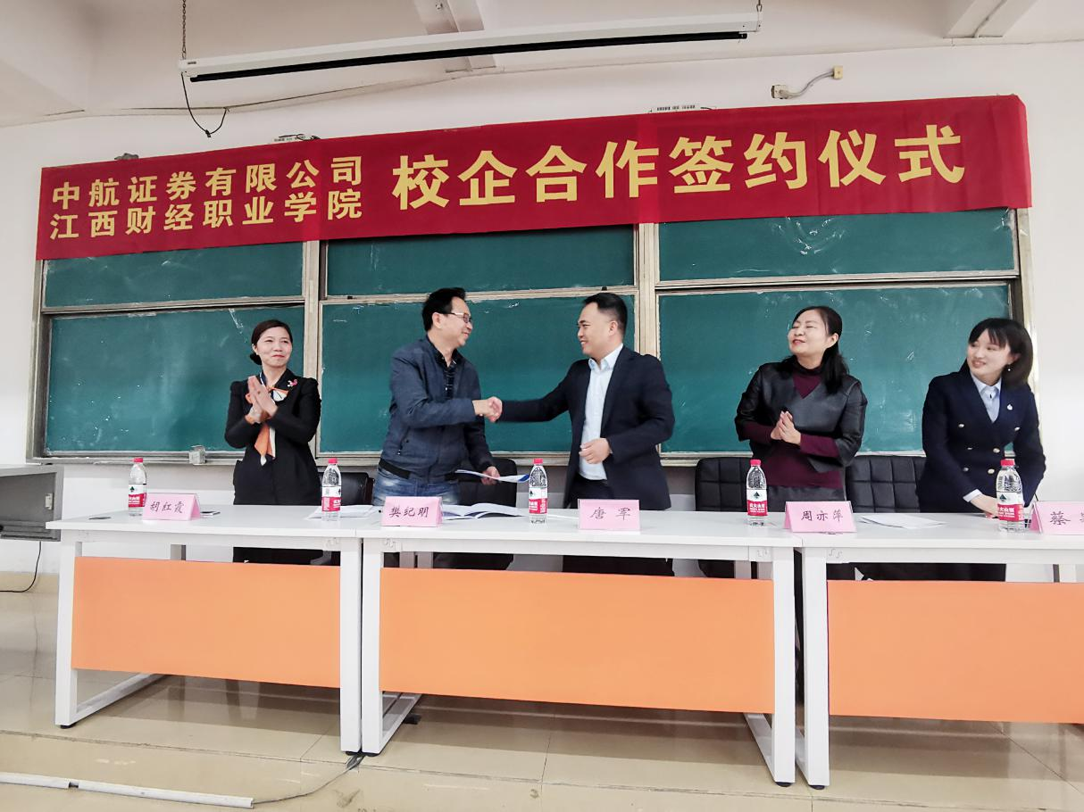 双方代表签订了校企合作协议书,并进行了“校外实训基地”“现代学徒制教育试点基地”“大学生投资者教育基地”和“证券行业技能大师工作室”的揭牌仪式。在场全体师生及中航证券代表对签约仪式的圆满完成表示衷心祝贺。