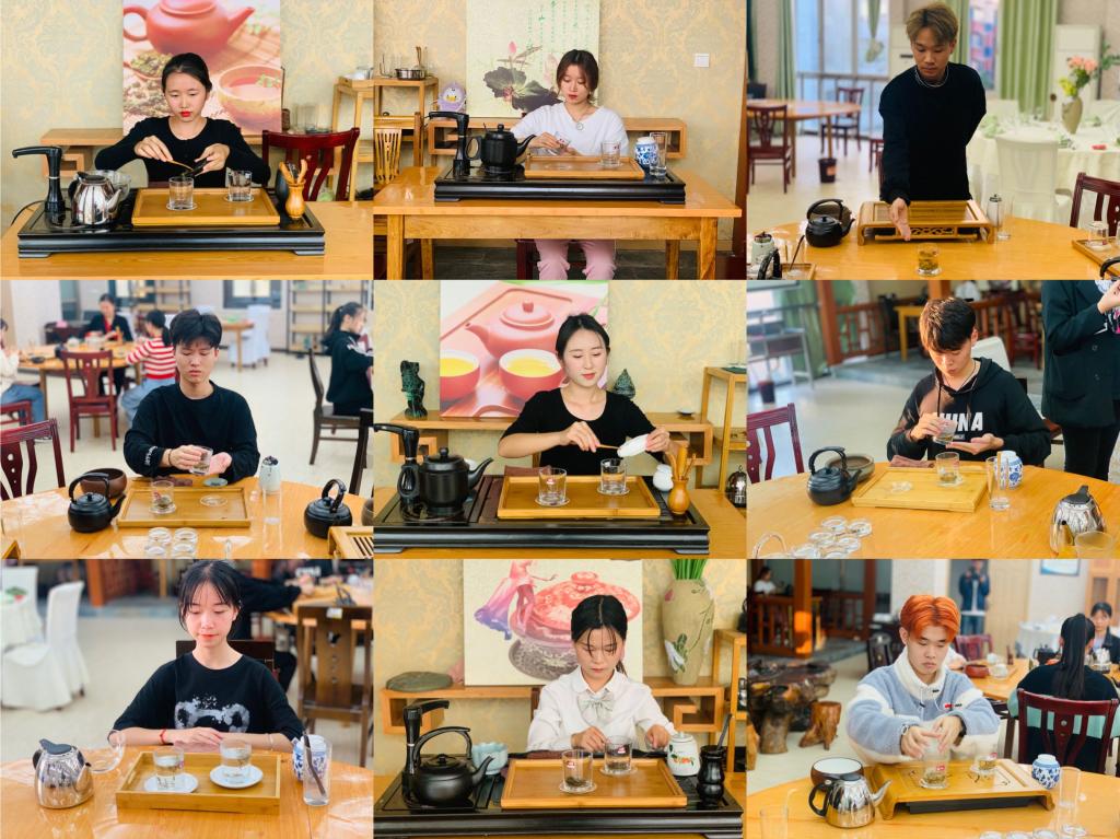 为贯彻教育部及江西省教育厅职教周精神,共筑职教梦,展职业风采,11月12日下午,在我校茶艺实训室,由经济贸易学院茶艺技师石莹老师带领2019级酒店管理专业的同学,为参加职教周活动举行了一场视觉、嗅觉与味觉交融的茶艺冲泡与鉴赏的体验活动。在本次活动中大家习得了六大基本茶类的特征;以洞庭碧螺春、黄山毛峰、西湖龙井等名优绿茶为代表,展示了玻璃杯上、中、下投法冲泡技法;最后大家共同展示了庐山云雾茶茶艺表演,表演现场主泡们面带微笑,姿势优雅,副泡讲解细致,在同学们的举止投足之间,我们欣赏到了他们的自信优雅,温和婉约,领略了当代学生的气质和风采。