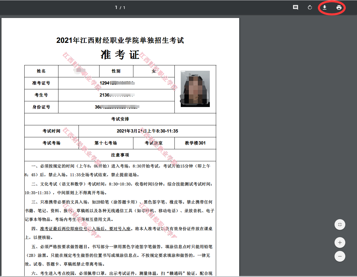 四、点击右上角红色圈里面的白色按钮下载或打印