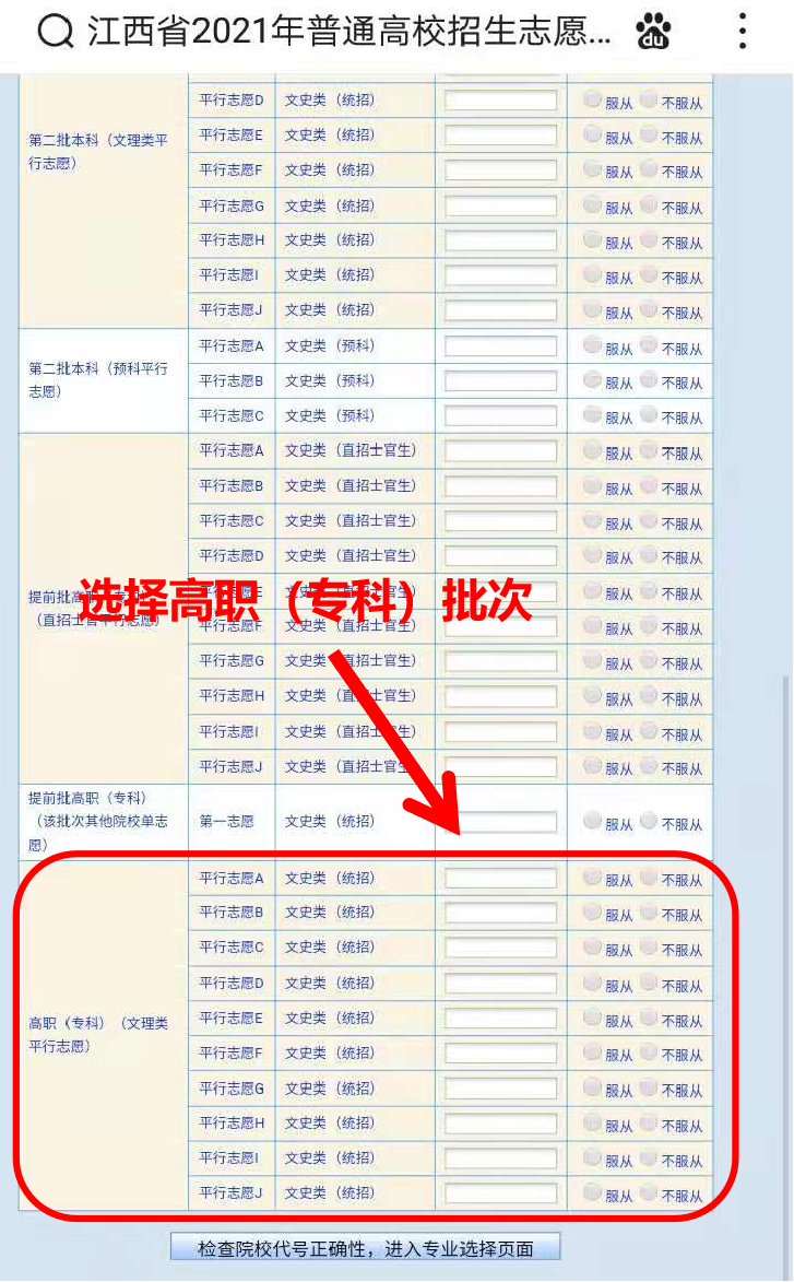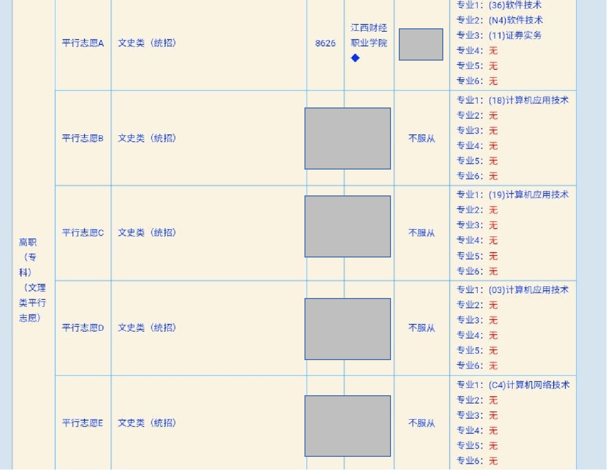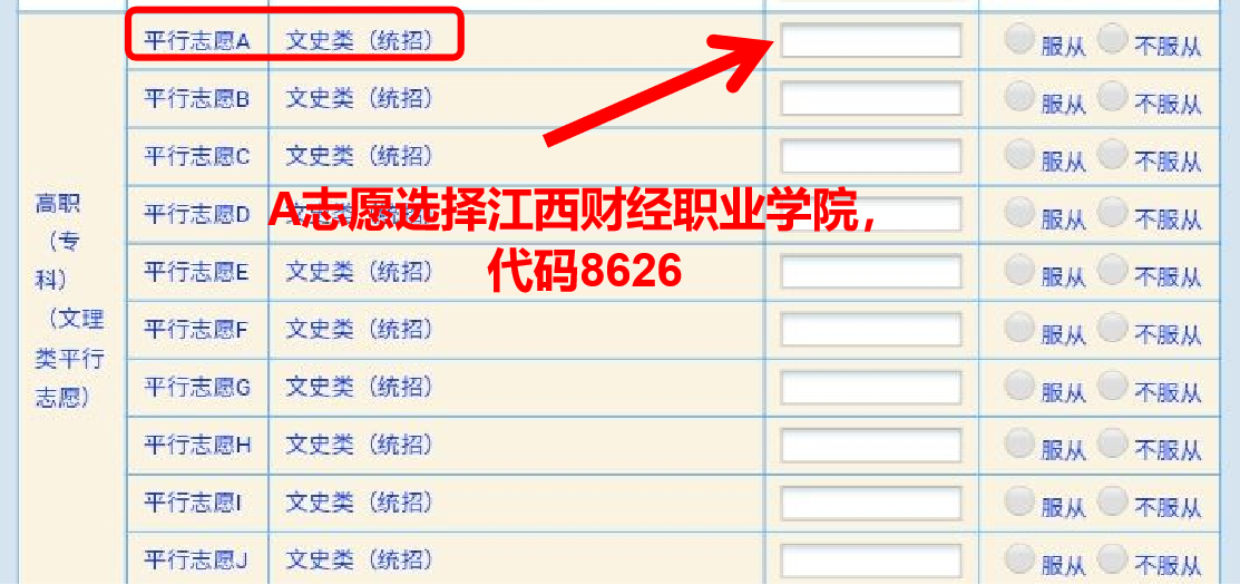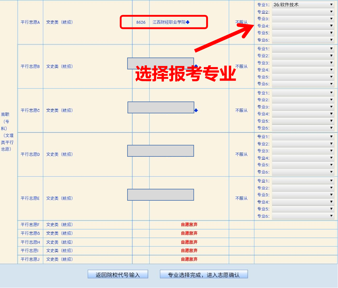 第六步、在A志愿选择“江西财经职业学院”,代码8626