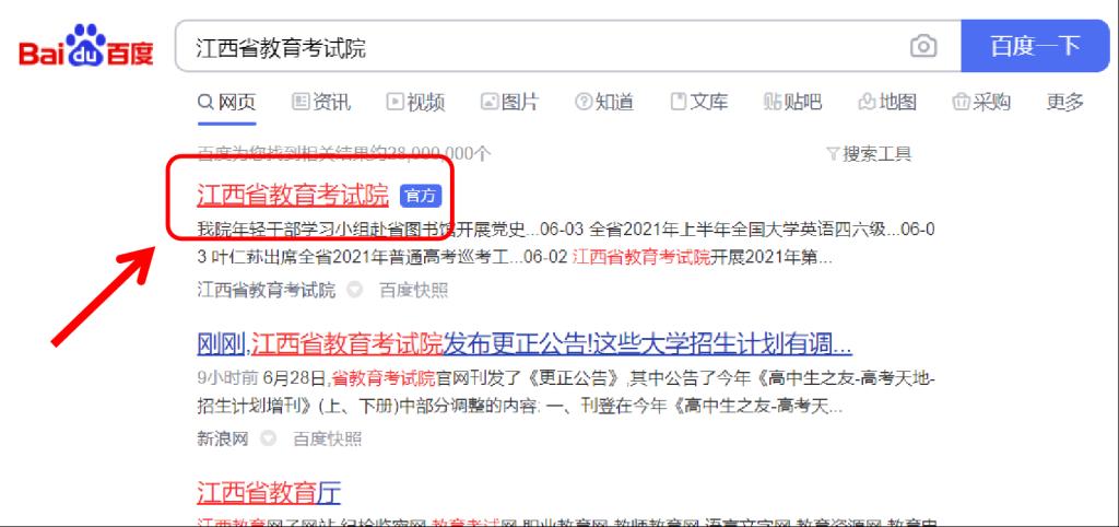第一步、打开百度输入或搜索江西省教育考试院(http://www.jxeea.cn/)