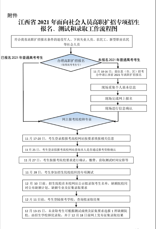 附件:江西省2021年面向社会人员高职扩招专项招生报名、测试和录取工作流程图
