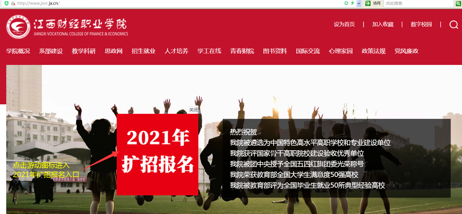 第一步、打开百度,搜索“江西财经职业学院”或输入网址“http://www.mbylp.cn/”进入我校官网首页。