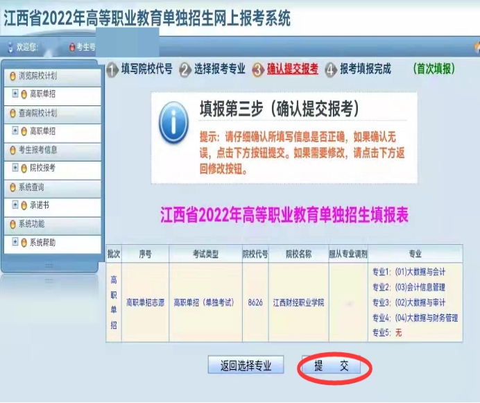 第五步:确认提交报考