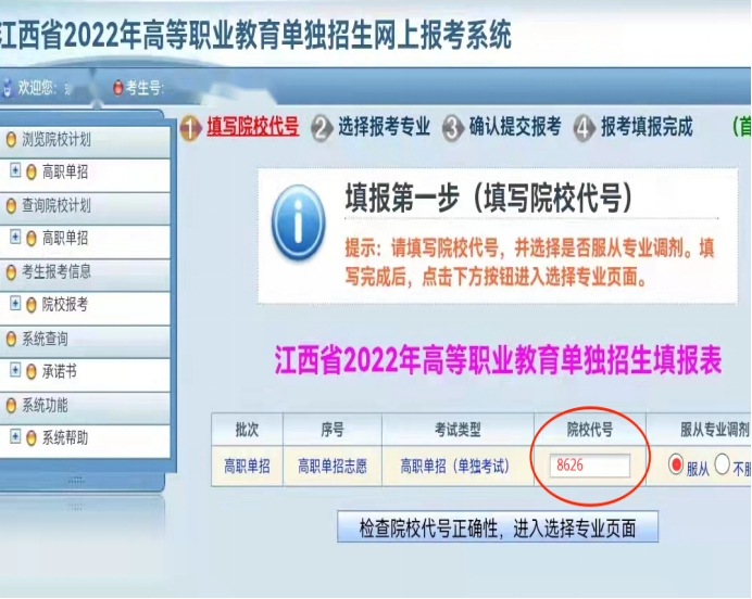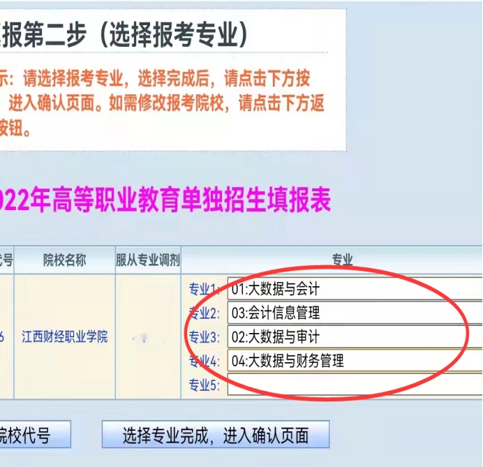 第四步:选择报考专业