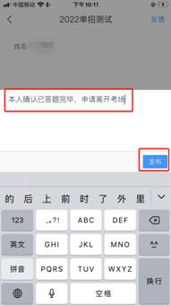7.考生交卷成功,需点击考试页面右上角“反馈”按钮,向监考老师发布:本人确认已答题完毕,申请离开考场,待收到监考老师从腾讯会议发出的确认离开回复后,方可退出腾讯会议。