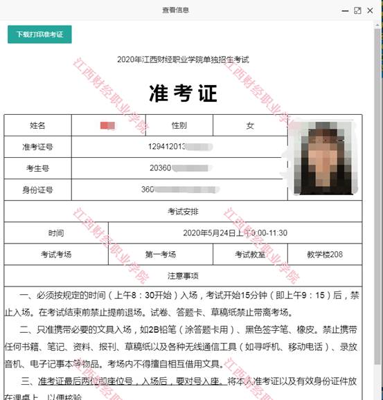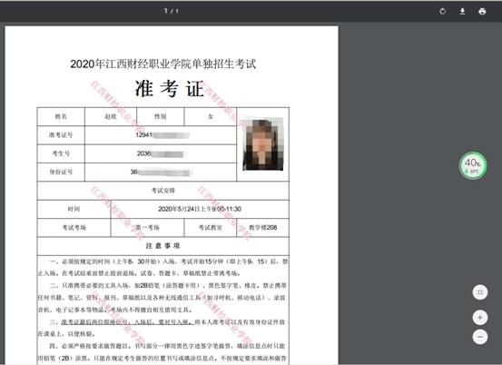 二、点击红色移动图标“2020单独招生准考证打印”(http://welcome.jxvc.jx.cn/dzxx/info/dzsearch)