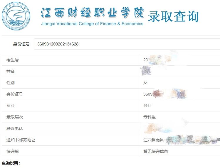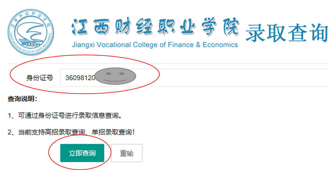 第二步:输入身份证号,点击“立即查询”,即可获得录取结果