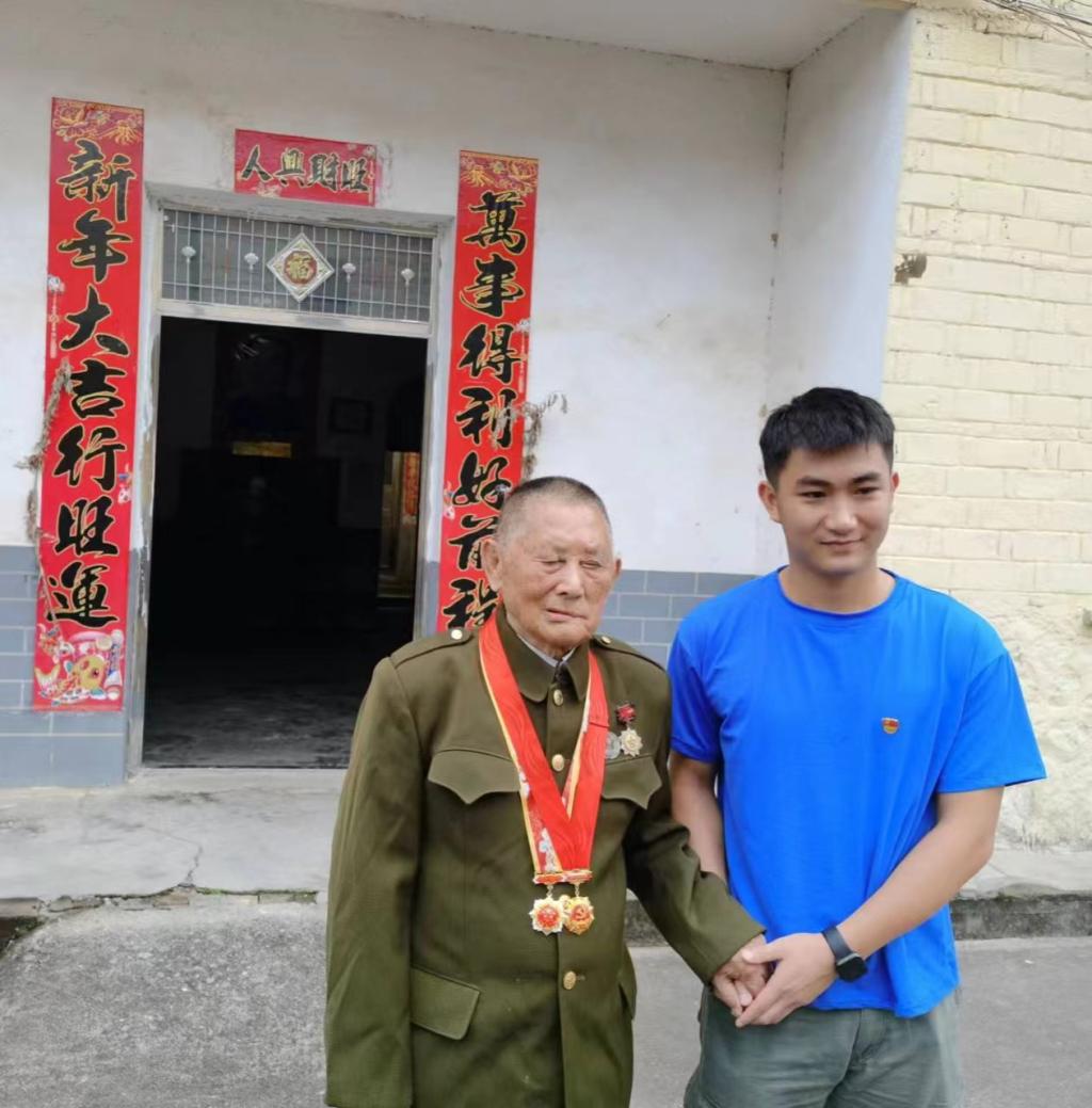图为老人与队伍中退役大学生合影。中国青年网通讯员 吴宇翔 摄