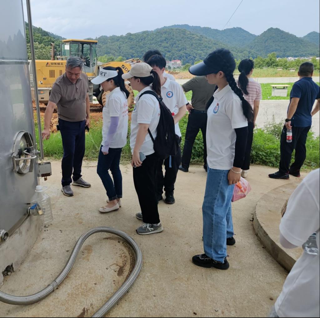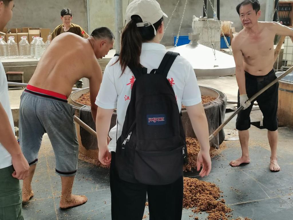 中国青年网九江6月26日电 (通讯员 龙星 陈莉玲) 为深入了解乡村振兴工程的实效与成就,帮助发展乡村产业。6月26日,江西财经职业学院“青春筑梦·三下乡”社会实践队赴瑞昌市高丰镇九江酿造厂山药酒产业基地进行特色产业调研,基地负责人热情欢迎青春筑梦队的到来,为实践队师生详细介绍了山药酒酿造工艺的流程和原料生产地。负责人带领青春筑梦队来到山药酒蒸馏区,酿酒师邀请队员们品尝山药酒。其后,负责人畅谈了山药酒基地的未来规划和生产规模,通过对外合作实现共赢,让本地山药酒外销成为富国强县、乡村振兴的特色产业。