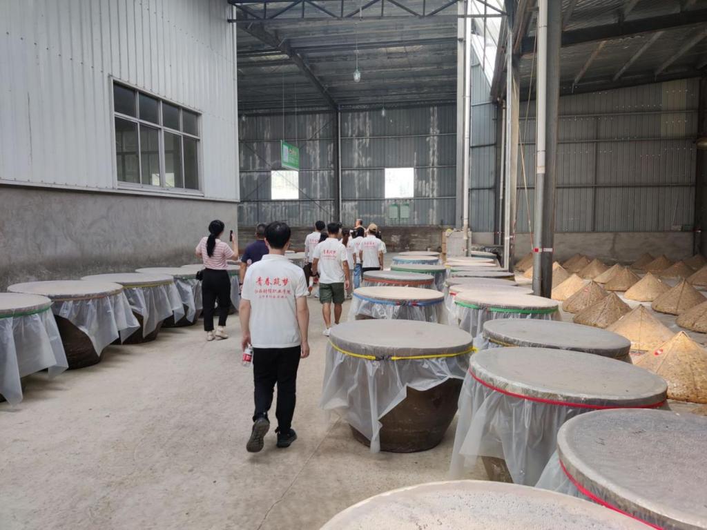 图为青春筑梦队参观山药酒储存仓库。中国青年网通讯员 龚尔洁 摄