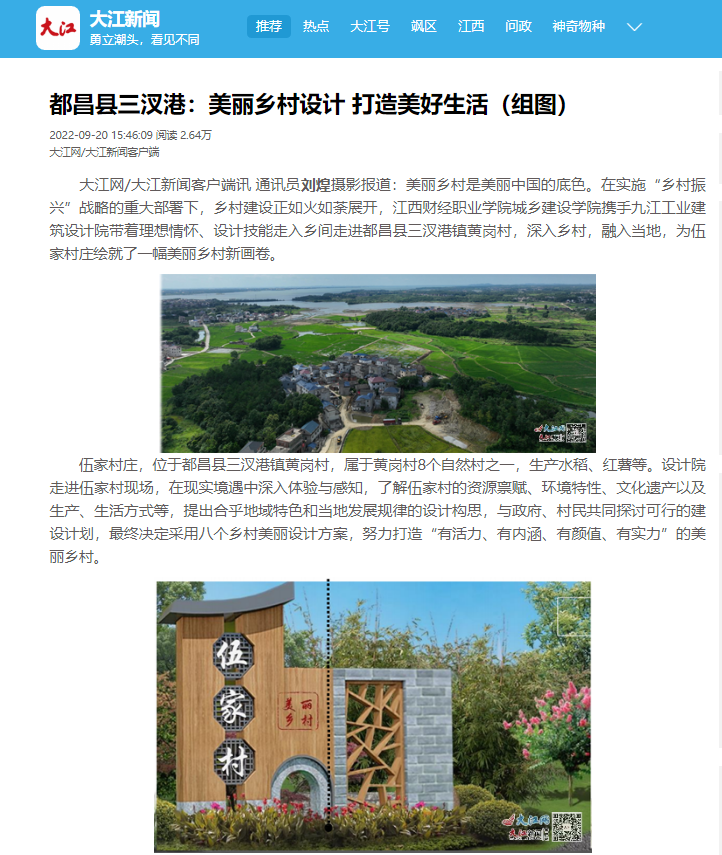 大江网:都昌县三汊港:美丽乡村设计 打造美好生活——江西财经职业学院城乡建设学院以设计技能助力都昌县三汊港镇乡村振兴