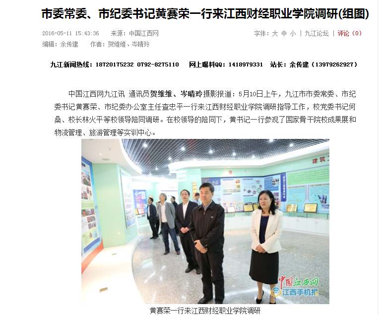 5月11日,中国江西网报道市委常委、市纪委书记黄赛荣一行来我校调研。