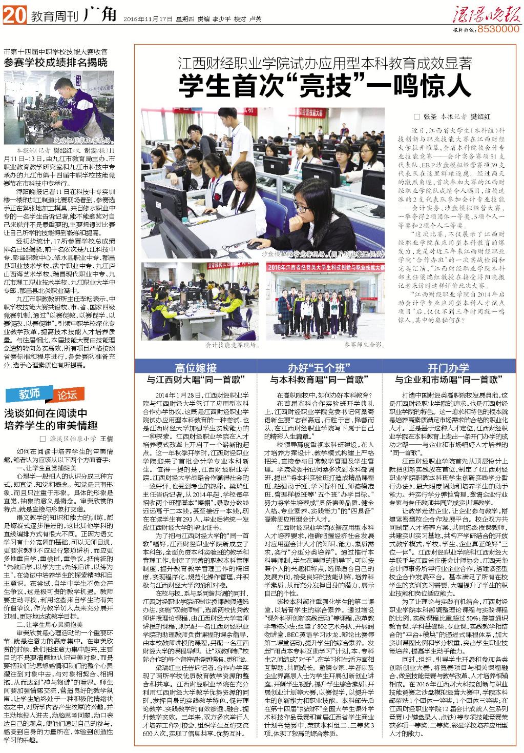 11月17日,浔阳晚报发文报道我校应用型本科教育取得显著成绩。