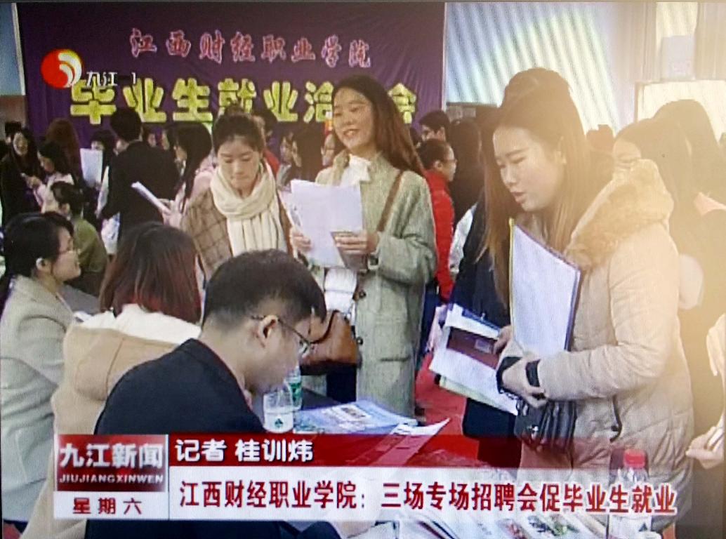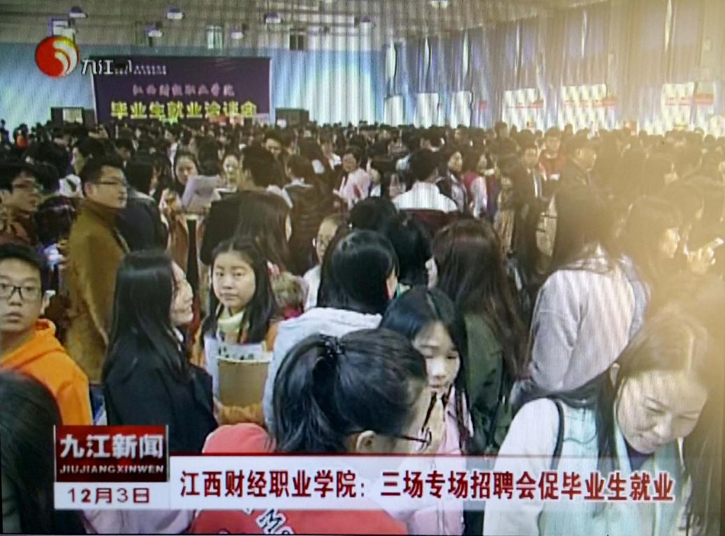 12月3日,九江电视电新闻频道对我校连续举办三场大型招聘会促进毕业生就业情况进行报道。