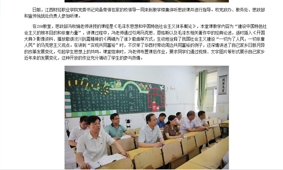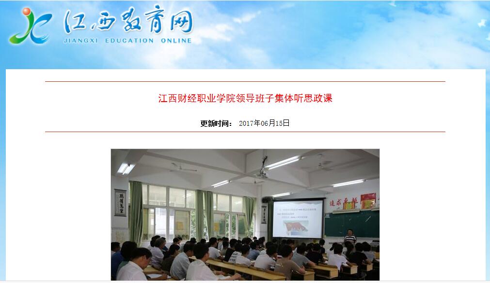 6月15日,江西教育网报道我校党委书记何桑率领导班子集体听思政课。