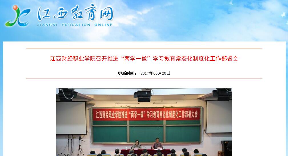 6月20日,江西教育网报道我院召开推进“两学一做”学习教育常态化制度化部署会。