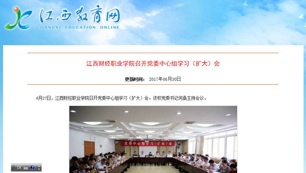 6月30日,江西教育网报道我院召开党委中心组学习,传达省教育工委有关文件精神,并开展推进“两学一做”常态化制度化第1次集中学习。