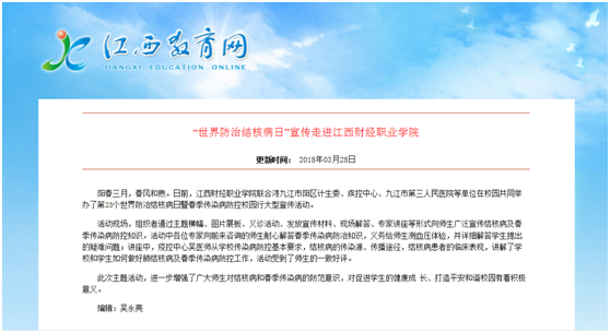 3月28日,江西教育网报道我?!笆澜绶乐谓岷瞬∪铡毙疃?。