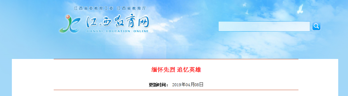 4月8日,江西教育网报道我??埂按小?019清明祭英烈”主题党日活动。