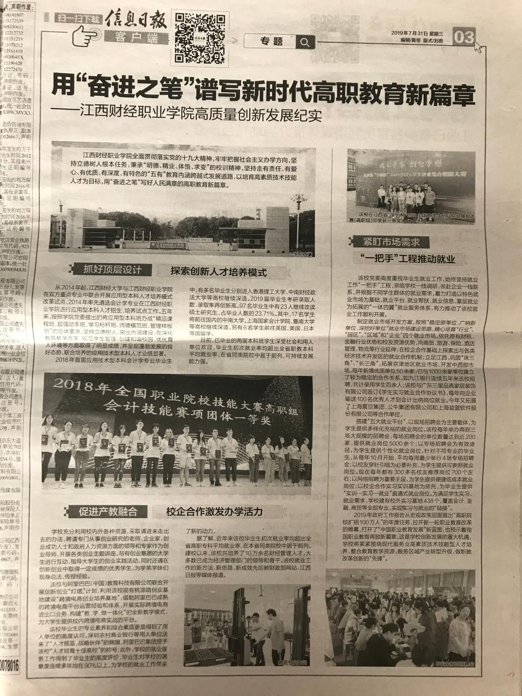 7月31日,《信息日报》整版报道我校近年来高质量发展纪实。