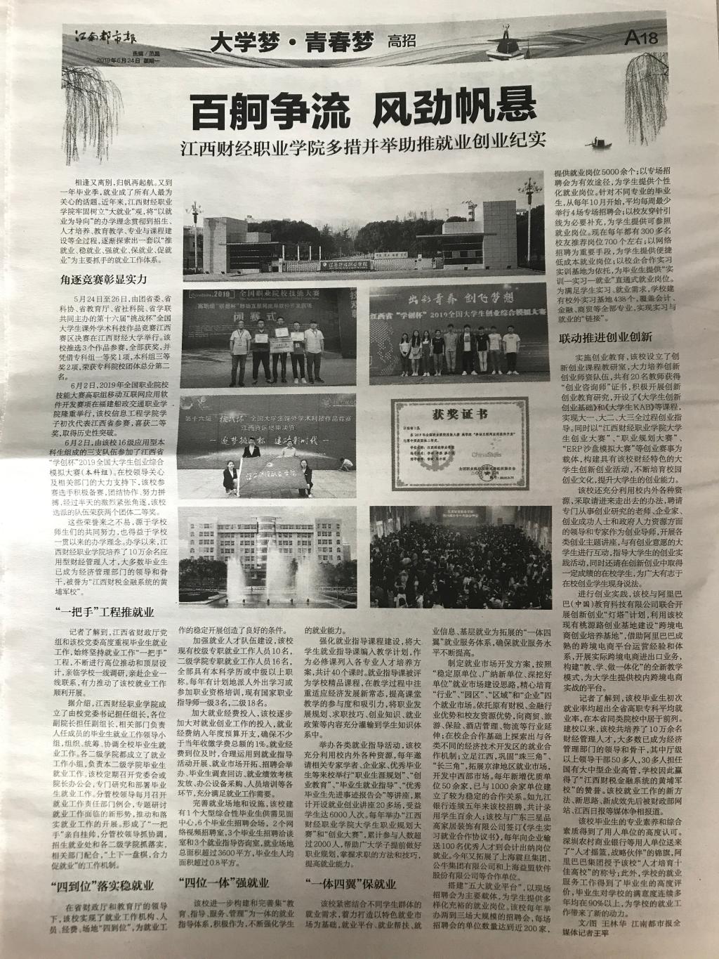 6月24日,《江南都市报》整版报道我校以“推就业、稳就业、强就业、保就业、促就业”为主要抓手的就业工作体系建设先进经验。